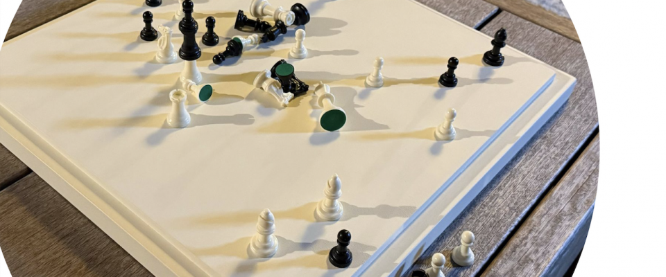 Le scacchiere danno la possibilità a due individui di relazionarsi in maniera totalmente estranea alle dinamiche di scopo sempre più presenti nel nostro tempo, mettendo i due soggetti nella insolita condizione di rapportarsi in maniera libera, illogica, silenziosa.